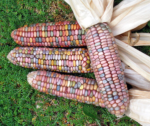 Die Kolben von diesem Ziermais variieren in ansprechenden Pastellfarben.